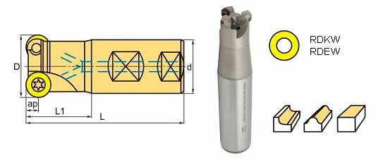Фрезы со сменными круглыми пластинами бывают концевые, торцевые. Радиусная геометрия пластин (угол в плане в процессе обработки изменяется от 0 до 90°), возможность легко снимать больше объемы металла и сплава