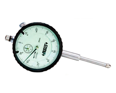 Индикатор − устройство для измерения отклонений линейных размеров при помощи относительного и абсолютного методов. Также индикатор определяет величину отклонения от заданной геометрической формы. Многооборотный циферблат, на котором нанесены деления круговой шкалы и расположен указатель числа оборотов стрелки. Крепление за ушко и присоединительную гильзу.
