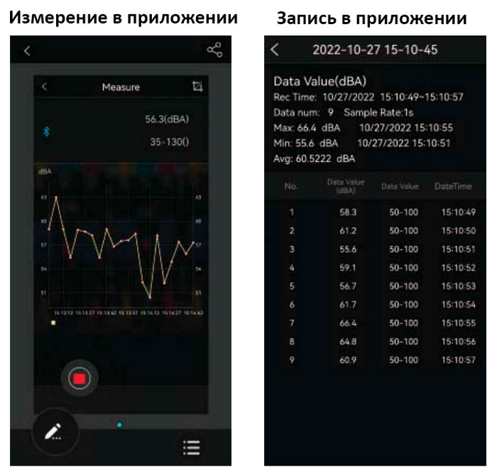 Через приложение можно управлять прибором — например, запускать измерения или менять настройки.