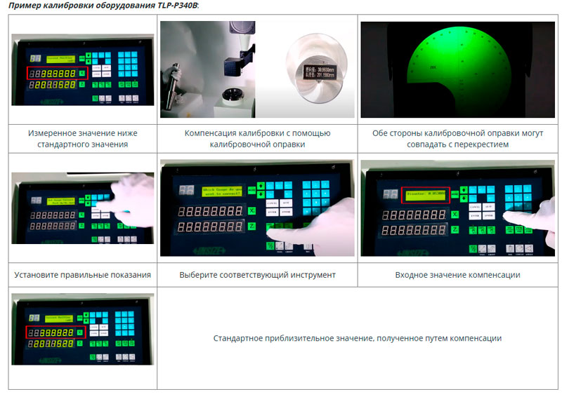 Измеренное значение ниже стандартного значения | Компенсация калибровки с помощью калибровочной оправки | Обе стороны калибровочной оправки могут совпадать с перекрестием |