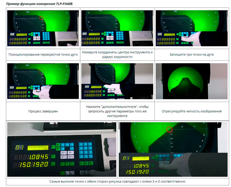 Позиционирование перекрестия точки дуги | Измерьте координаты центра инструмента и радиус окружности | Запишите три точки на дуге |