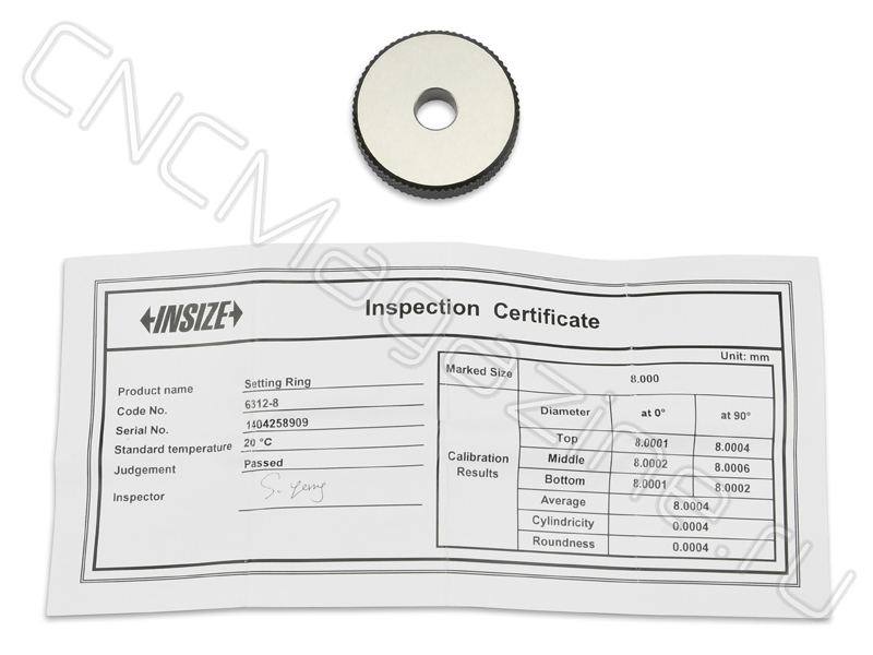 Установочное кольцо для нутромеров. Внутренний диаметр 8 мм. Округлость и цилиндричность 0.0004 мм.