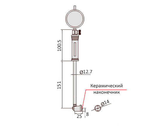 5511-1130-B Нутромер индикаторный НИ 50-160 мм, 0.01 мм, глубина измерений до 150 мм, керамические наконечники