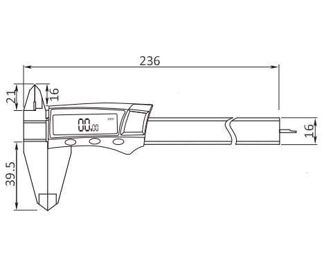 Электронный пластиковый штангенциркуль с ЖК-дисплеем. Диапазон измерений 0-150 мм/0-6", шаг 0.01 мм / 0.0005". Наружные и внутренние измерения.