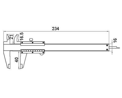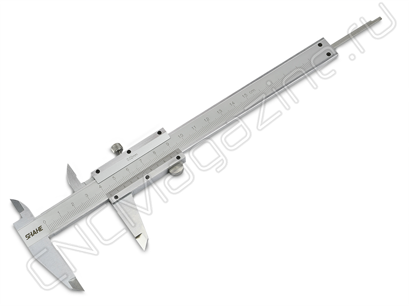 Нониусный штангенциркуль с 4-мя губками для наружных и внутренних измерений. Диапазон измерений 0-150 мм, шаг 0.02 мм.