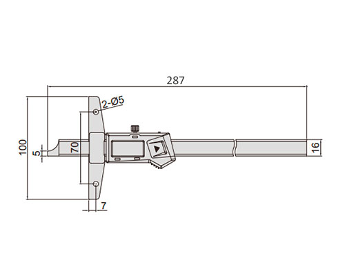 Электронный штангенглубиномер с ЖК-дисплеем. Диапазон 0-200 мм /0-8", шаг 0.01 мм / 0.0005". Длина губок 100 мм.