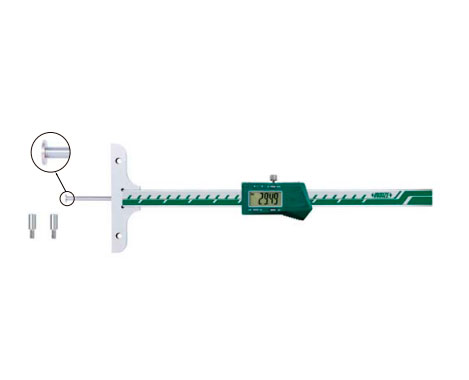 Электронный штангенглубиномер беспроводной с цилиндрическим стержнем и ЖК-дисплеем. Диапазон 0-120 мм /0-4.7", шаг 0.01 мм /0.0005". Длина губок 101 мм.