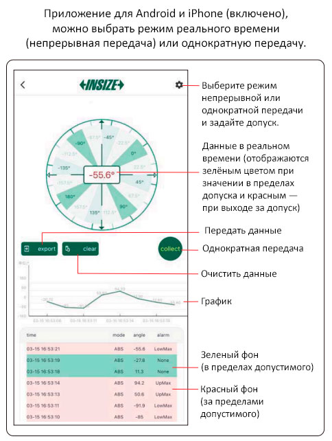 • Bluetooth-подключение — передача данных на расстояние до 15 м (в зоне прямой видимости).