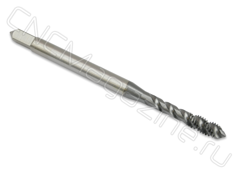 Многофункциональный универсальный машинный метчик из быстрорежущей попрошковой стали HSSE-PM со спиральной стружечной канавкой. С покрытием TiCN. Для глухих отверстий. Угол спирали фрезы 45 градусов.
