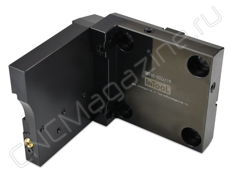 Инструментальный блок для токарного станка с ЧПУ, держатель отрезных лезвий BMT65-U32x119 для наружной обработки, односторонний, радиальный. Статический, с внешним и внутренним охлаждением.