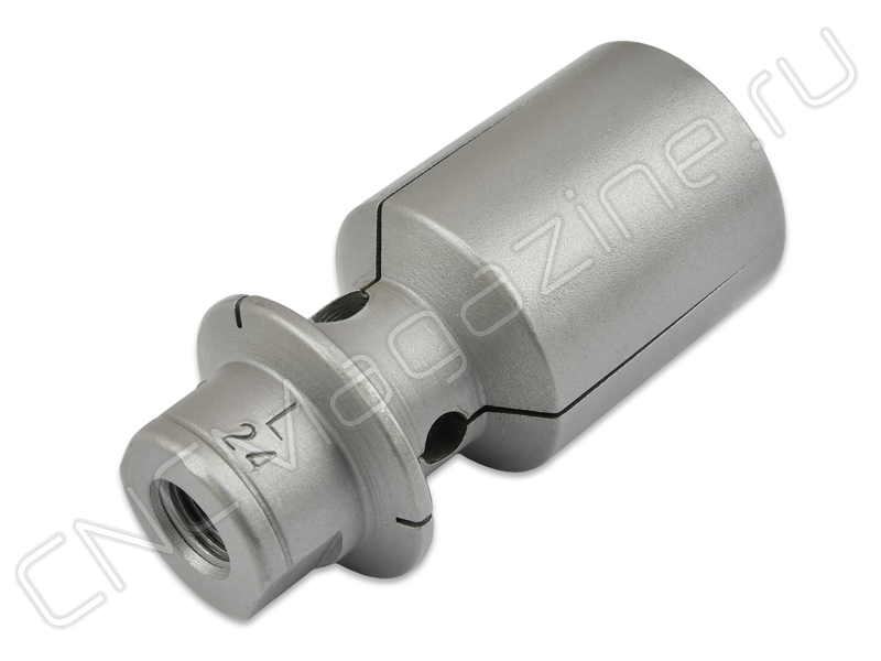 Для зажима круглого прутка Ø 24 мм. D цанги 27.6 мм, d 17 мм, L 60 мм. С помощью барфидерных цанг осуществляется соединение толкателя податчика с прутком.