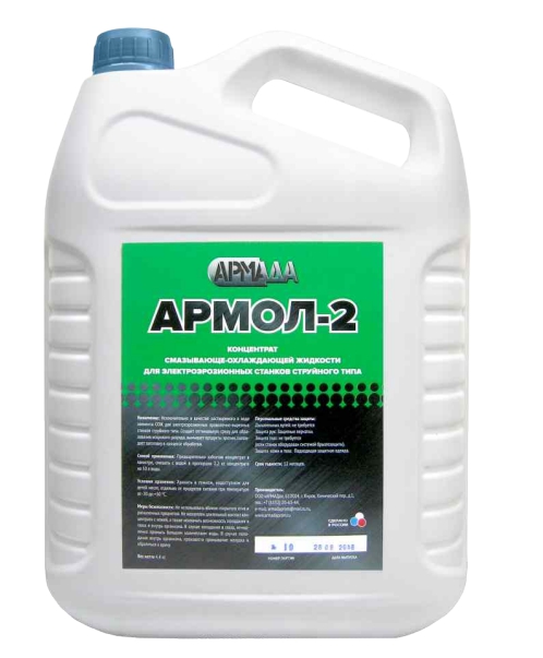 СОЖ «Армол-2» предназначена для использования в виде водных растворов в качестве рабочей жидкости в электроэрозионных проволочно-вырезных станках серии ДК (DK) работающих на молибденовой проволоке.