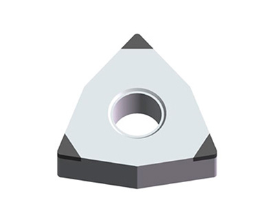 Сменная твердосплавная пластина по металлу WNGA. Три вставки с поликристаллическим кубическим нитридом бора, шесть рабочих кромок. Тригональная. 80°, двухстороняя. Группа обрабатываемых материалов по ISO: K.