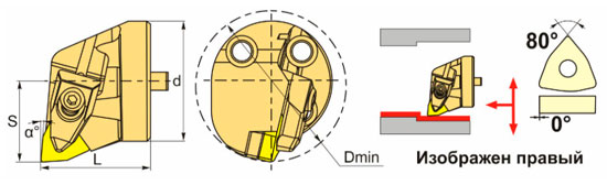 Сменные головки-картриджи для расточных антивибрационных державок (борштанг). С креплением типа D (двойной прижим кронштейном). С углом в плане 91°.