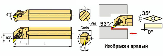 Державка расточная с креплением типа S (закрепление пластин винтом). С углом в плане 95°. A - с каналом для СОЖ, S - без канала для СОЖ.