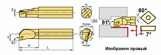 Державка расточная с креплением типа S (закрепление пластин винтом). С углом в плане 91°.