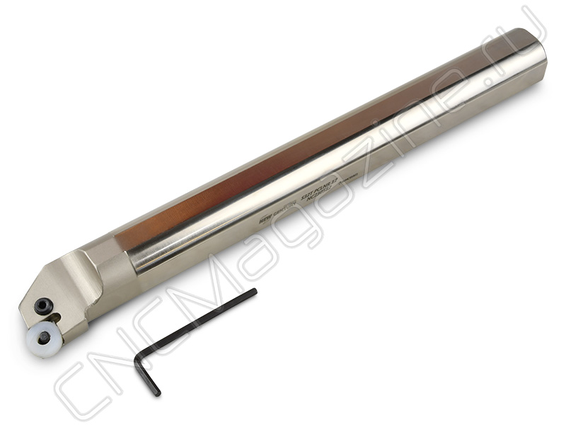 Резец токарный расточной по металлу со сменными пластинами. Для пластин CN**1204**. Державка расточная с креплением типа P (прижим рычагом за отверстие). С углом в плане 95°.
