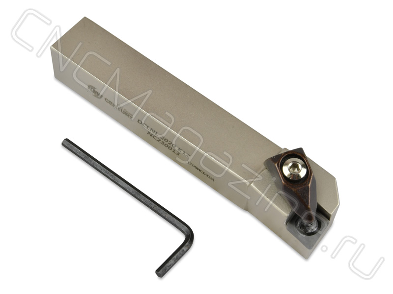 Резец токарный наружного точения по металлу со сменными пластинами. Для пластин CN ** 1204**. Державка токарная с креплением типа D (двойной прижим кронштейном). С углом в плане 95°. Державки для токарных пластин для продольного точения и подрезки торца.