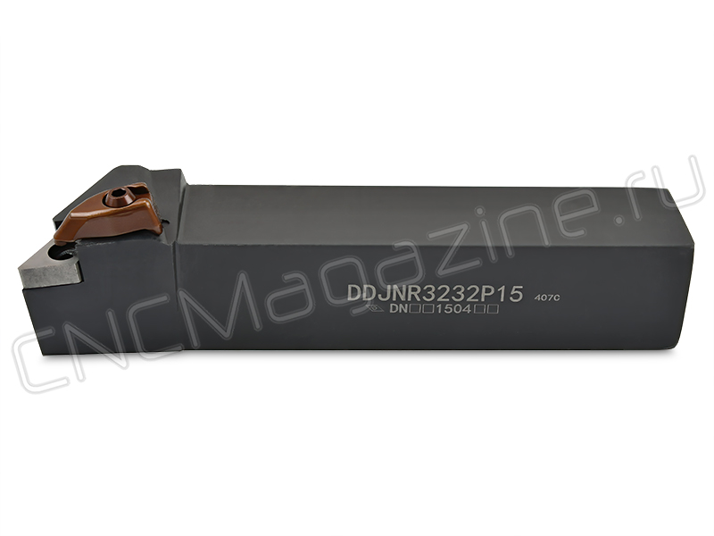 Резец токарный для наружного точения по металлу со сменными пластинами. Для пластин DN**1504**. Державка токарная с креплением типа D (двойной прижим кронштейном). С углом в плане 93°. Для обработки по контуру.