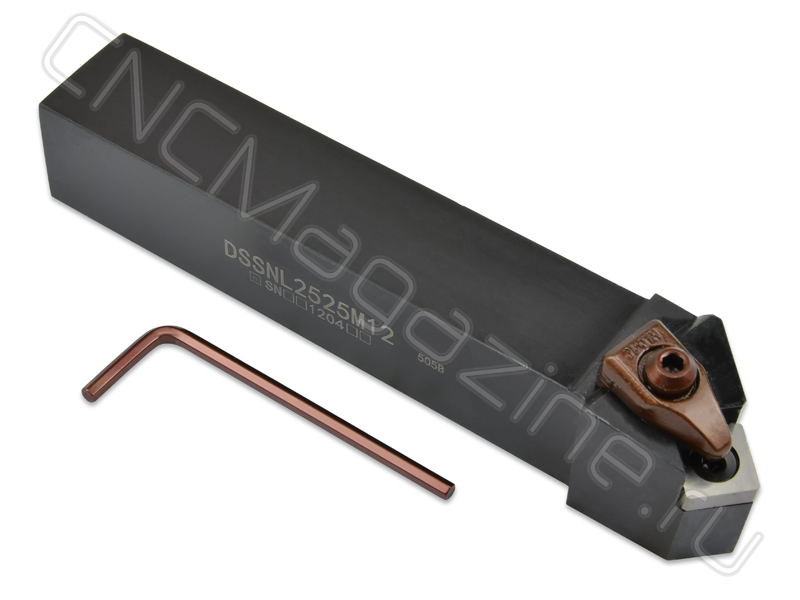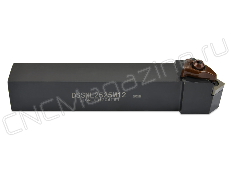 Резец токарный для наружного точения по металлу со сменными пластинами. Для пластин SN**1204**. Державка токарная с креплением типа D (двойной прижим кронштейном). С углом в плане 45°. Для продольного точения и подрезки торца.
