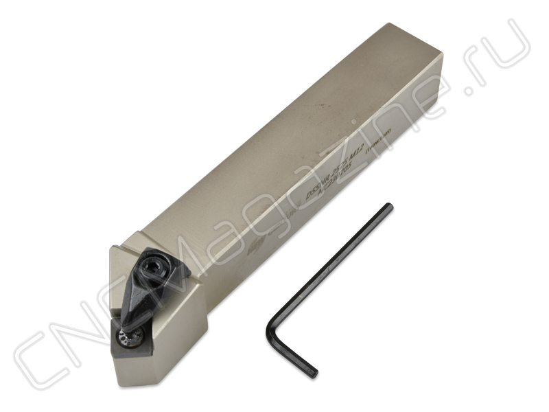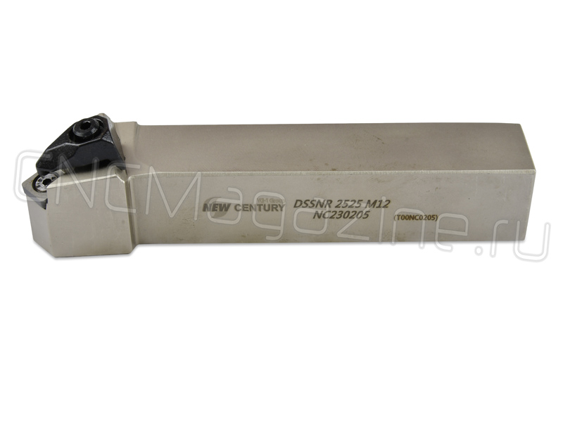Резец токарный для наружного точения по металлу со сменными пластинами. Для пластин SN**1204**. Державка токарная с креплением типа D (двойной прижим кронштейном). С углом в плане 45°. Для продольного точения и подрезки торца.