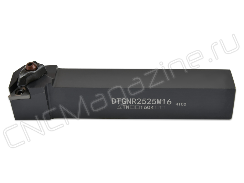 Резец токарный для наружного точения по металлу со сменными пластинами. Для пластин TN**1604**. Державка токарная с креплением типа D (двойной прижим кронштейном). С углом в плане 91°.