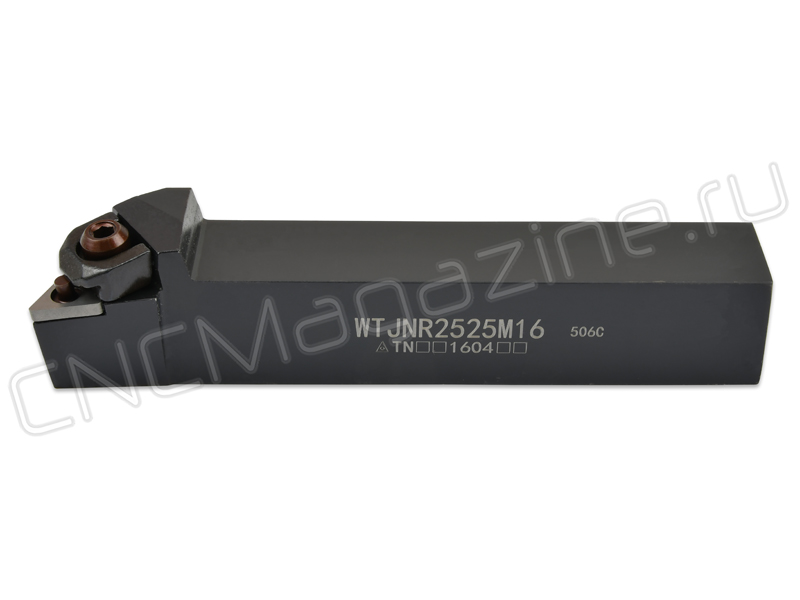 Резец токарный для наружного точения по металлу со сменными пластинами. Для пластин TN**1604**. Державка токарная типа W (прижим клин-прихватом на штифте). С углом в плане 93°.